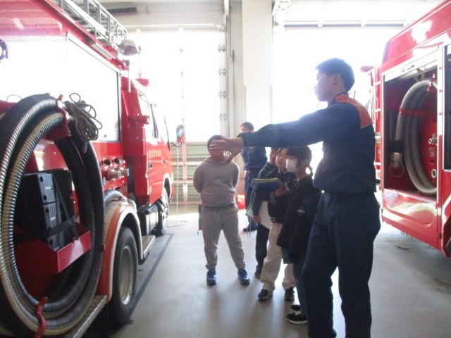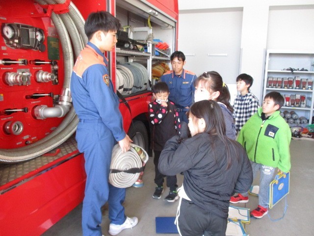 消防車の中の水の量や装備の重量等、思った以上に大きな規模であることに驚いていた子供たちでした。