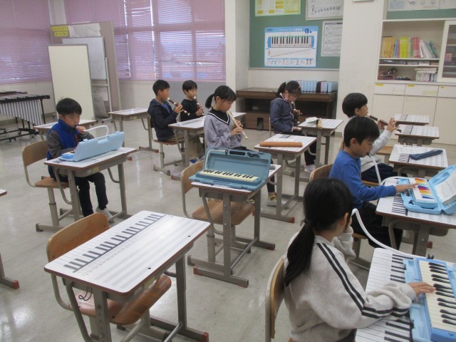 今日の朝のハーモニーの時間は、若草グループごとに「カントリーロード」の演奏練習を、鍵盤ハーモニカやリコーダーでしました。演奏したいパートを自分で選び、練習しました。上級生が周りの子供たちに声をかけ、全員で合わせて演奏する場面がありました。子供たちの今後の頑張りに、期待が膨らみます。