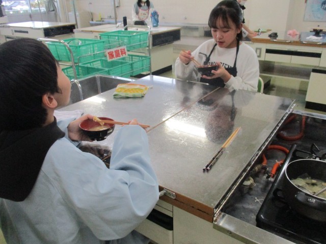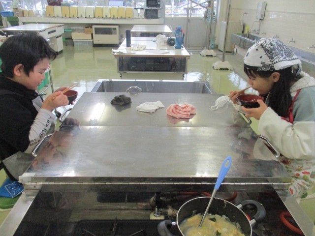 5年生は、煮干しでだしを取って、みそ汁を作りました。だしのないみそ汁と比べて、風味が豊かになることや、味に深みが出ることに気付きました。