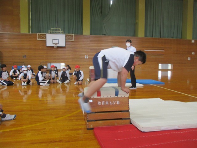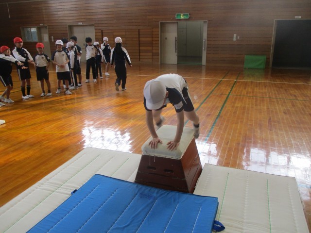 5限目の3・4年生合同体育は、跳び箱の練習に取り組みました。跳び箱に付く手の位置が分かった人、初めて3段の跳び箱を飛び越せた人等、日々、子供たちは、練習に励みながら、成長しています。12月中に、今の自分に「プラスワン」を目指します。