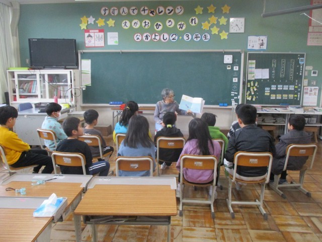 今日は、2学期最後の読み聞かせでした。ボランティアの方が、学年の発達段階に応じた本を選び、読み聞かせをしてくださいました。どの教室の子供たちも、真剣な様子で朗読の世界を味わいました。