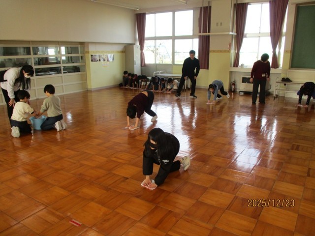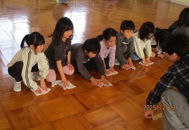 そして、食べ終わってからは、全校みんなで1年間お世話になったランチルームを掃除しました。
