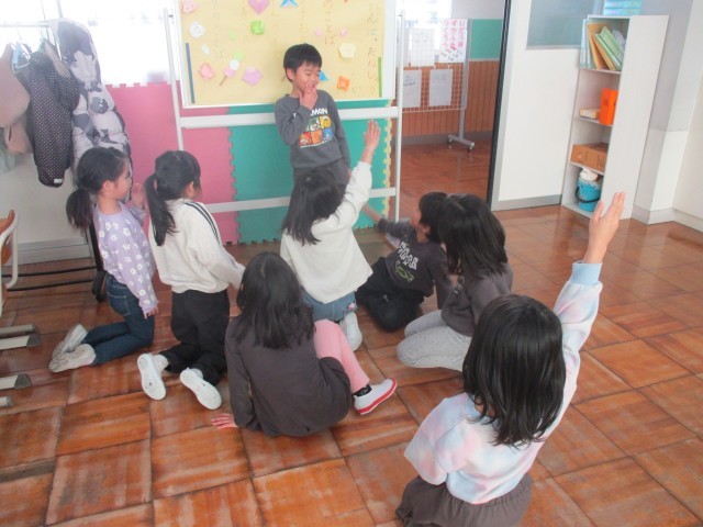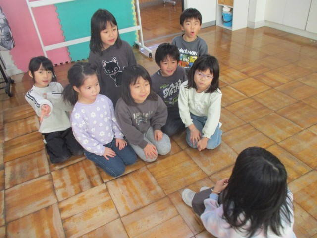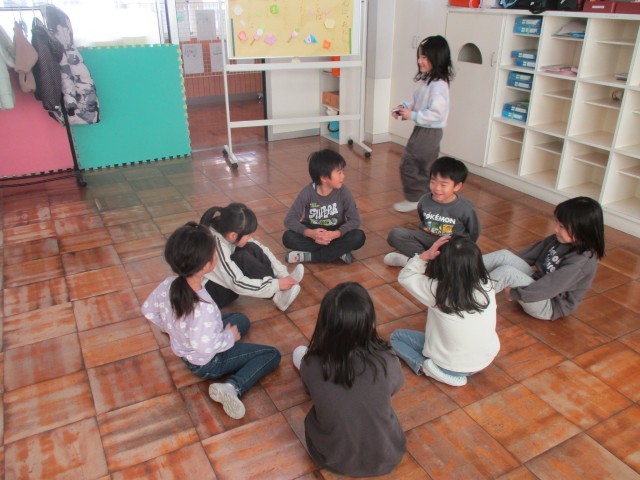 歌を歌ったり、クイズを出したり、ハンカチ落としをしたりしました。