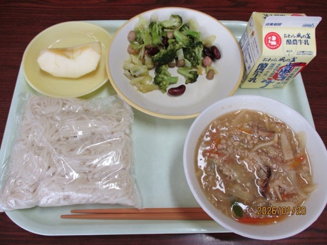 ソフト麺の肉みそ 牛乳