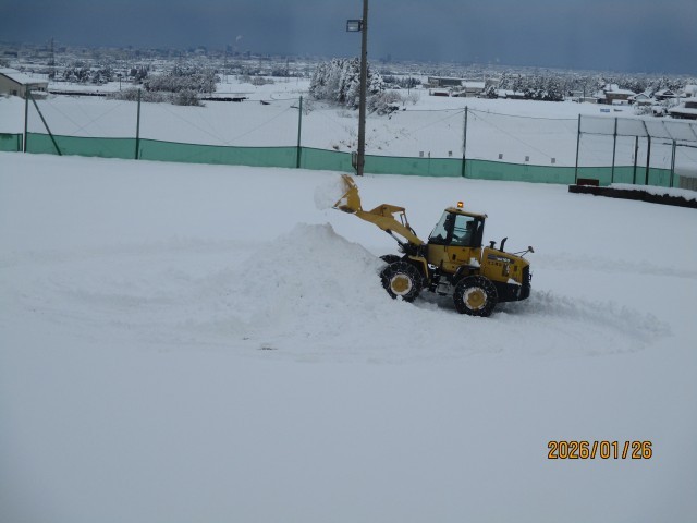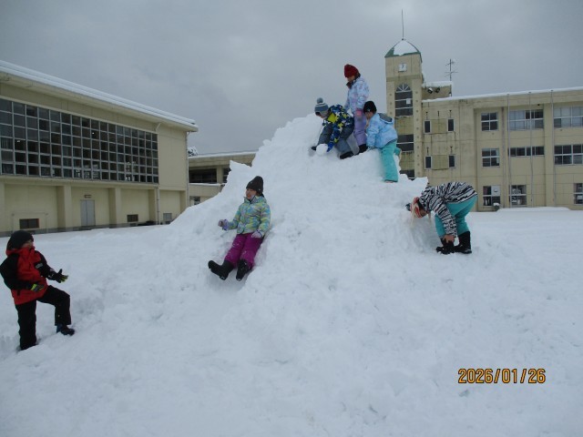 地域の方に、グラウンドの真ん中に、大きな雪山を作っていただきました。