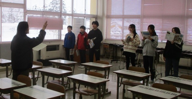 今日の朝のハーモニーも、卒業式に向けて、卒業生と在校生に分かれて、合唱練習をしました。卒業生は「翼をください」、在校生は「大空がむかえる朝」の練習をしました。卒業生は、曲の大切なポイントの練習を、繰り返し行いました。