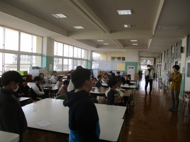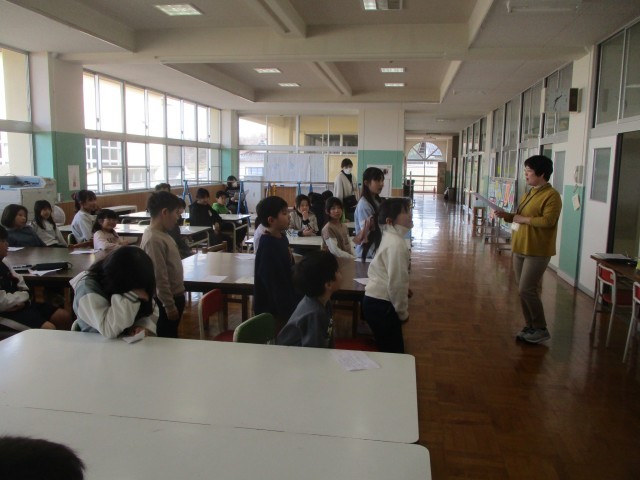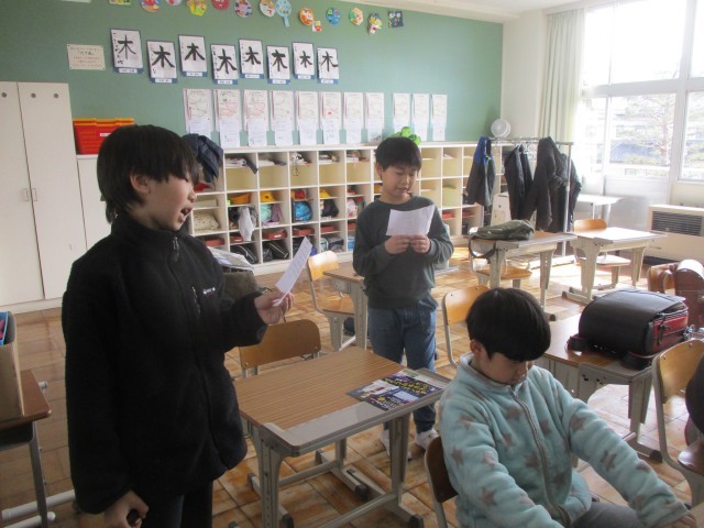 今日は、2回目の在校生の呼びかけ練習でした。若草グループごとに、セリフの役割分担をしました。1つのセリフを2人で分けたり、大きな声で言った方がよいと思うセリフを複数人で言ったりするなど、グループごとに、分担の仕方を工夫しました。卒業式に向けて、子どもたちの気持ちが高まっています。