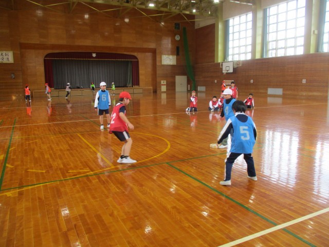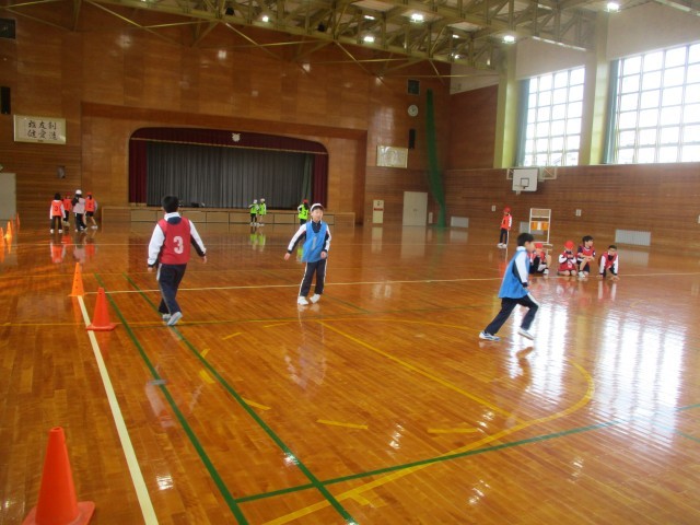 3月2日(月)3・4年生合同体育「スライドサッカー」