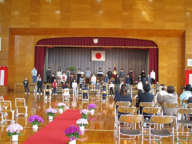 6年生の代表が歓迎の言葉を述べ、在校生全員でお祝いの歌「夢みるジャンプ」を送りました。