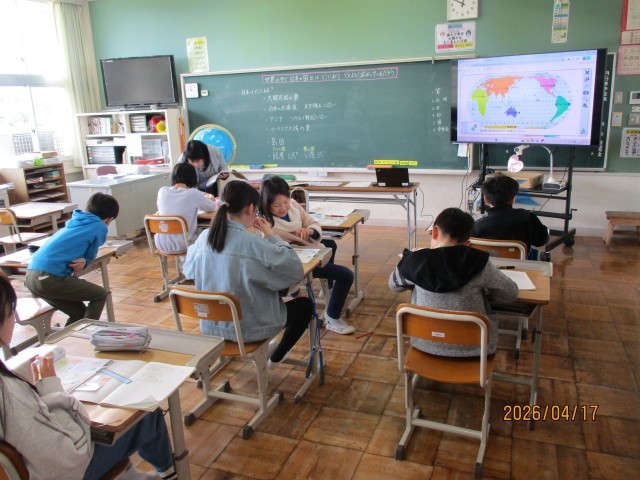 世界の中で日本の国土がどこにあるのかを学習しているところです。