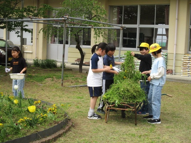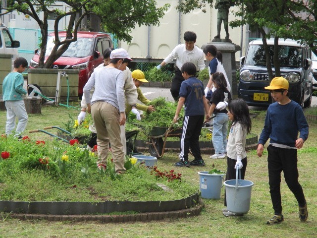 今日のクラスタイムに、今年度初の花壇活動を行いました。