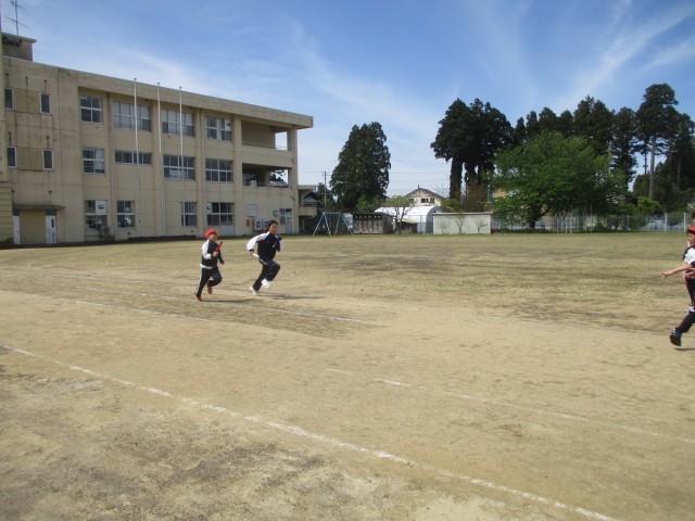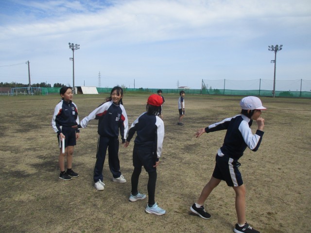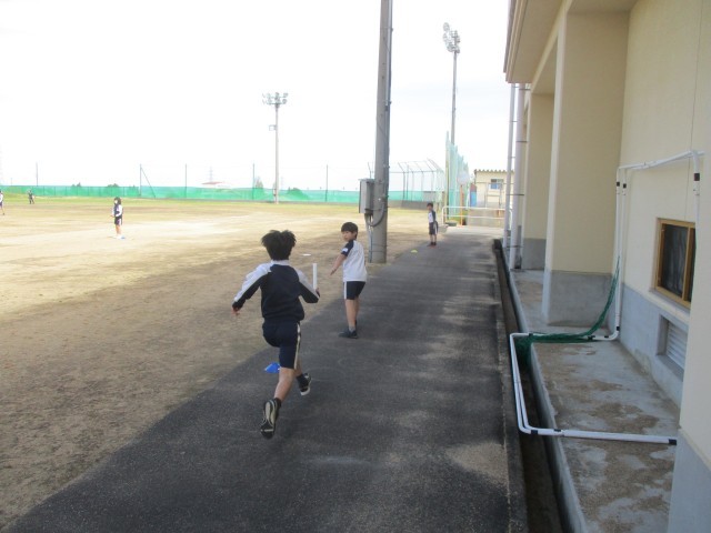 今日は、リレーのバトンパスの練習をしました。一列になり止まった状態でのバトンパス、20m程の間隔をとってのバトンパス等、3人~5人のグループで、様々なバトンパス練習に取り組みました。どのグループもスムーズなバトンパスができるよう、真剣に練習しました。運動会まで、練習を積み重ね、上達を目指します。