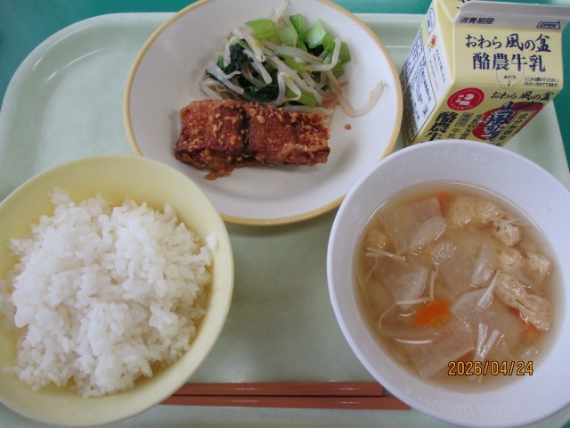 ごはん 牛乳 ふくらぎの利休揚げ しょうがひたし 味噌汁