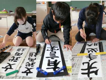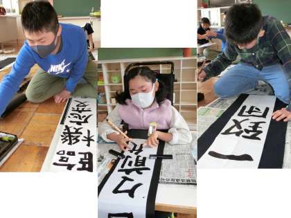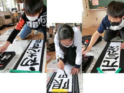 今日は、そんながんばる気持ちを四字熟語に込めて、毛筆で力強く表現しました。