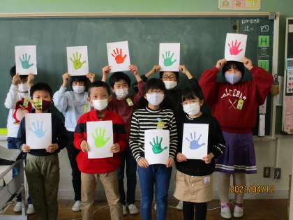 今、押した手形と4年生を終える時の自分の手の大きさがどのくらい違うのか楽しみです。