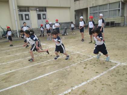1年生の体育の学習です。50m走のタイムを計測しました。