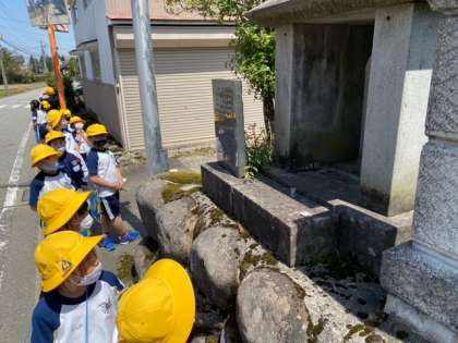 2・3年生 ふなくら地区たんけん 公開日 2021/04/23 更新日 2021/04/23 5・6年生 2・3年生で学校周辺を探検し、お地蔵様や観音様、神明社を見て回りました。 子供たちは不思議な祠を見つけて何のためにあるんだろうと考えていました。 「家の人に聞いてみようかなあ。」「家の近くにもないか探してみたいな。」という呟きも聞こえてきました。 船峅にはまだまだ不思議な秘密が隠されていそうです。