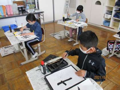 今日の様子です。書写では「林」の練習、清書を行いました。左右の字のバランスや書く位置に気を付けて、集中して机に向かい取り組みました。また、外国語活動では、天気の尋ね方や単語を、映像やゲームを交えてALTの先生と楽しく練習してました。