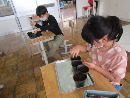 「これからみんなでお世話をして大切に育てたいな。」とこれからの生長に希望をもっています。毎日声をかけ、水やりを続けていきます。