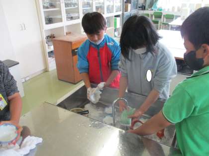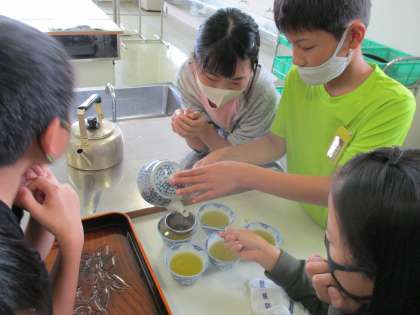 日本の伝統的な飲み物であるお茶の基本的ないれ方を学習しました。用具やコンロの安全な使い方を考えながら、友達と協力して実際にお茶をいれました。みんなで頑張っていれたお茶はとてもおいしかったようです。片付けも協力してできました。