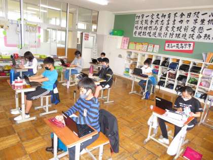 6年生は、一人一台端末を活用して調べ学習に取り組んでいます。