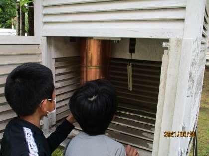 今日から、晴れ・曇り・雨の日の気温の変化を調べ始めました。登校し、1時間ごとにウィンドガーデンにある百葉箱の中の温度計を見に行き、以前自分たちで作ったグラフと表に気温を書き込んでいきました。