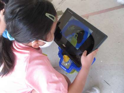 一人一台端末を使って写真を撮ったあと、葉を触ったり、色の違いを観察したりしました。
