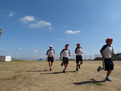 5・6年生は、来週の宿泊学習に向けて、体力つくりを始めました。