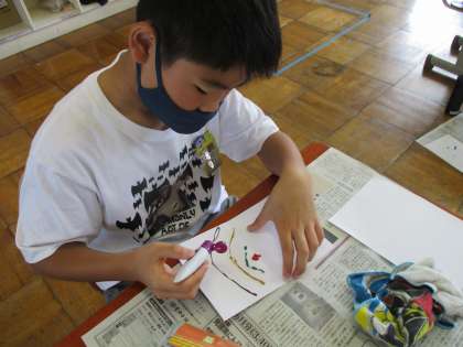 5年生の図画工作の時間では、「うれしい」や「悲しい」などの感情を絵で表現する学習をしています。様々な表現技法を用いて、感情をどのように表現するかを考えながら活動する子供たちでした。できあがりの作品が楽しみです。