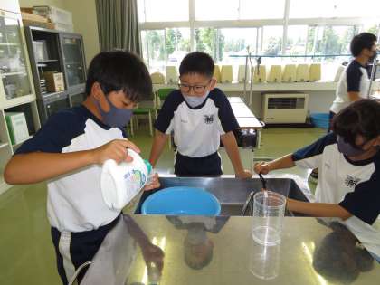 「汗や土の汚れでこんなに水がにごったよ」