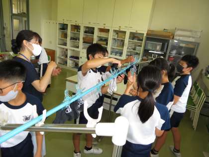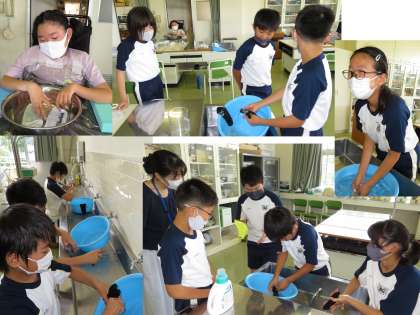 6年生は家庭科の時間に、自分の履いていたくつ下を手洗いで洗濯しました。