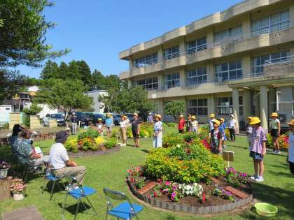 すてきな花壇で豊かな心を育む船峅小学校。よき伝統に、また新たな1ページが追加されました。