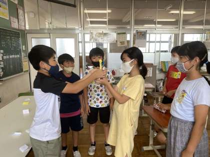 1学期、学習や行事に高学年として一生懸命に取り組みました。夏休みは、自分を伸ばす期間としていろいろなことにチャレンジしてほしいと思います。始業式に元気な姿で会えるのを楽しみにしています。