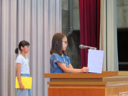 「1学期がんばったこと」の代表発表では、3年生がクラスの代表として堂々と発表することができました。