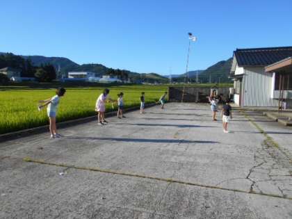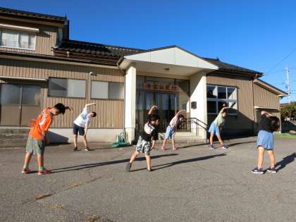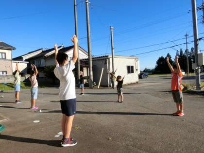 今朝も真っ青な夏空の下、子供たちは元気にラジオ体操をしていました。