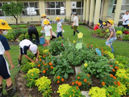 夏休み中は保護者の方にも水やりをしていただき、大変にありがとうございました。おかげで、きれいな花が咲き続いています。