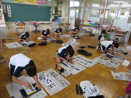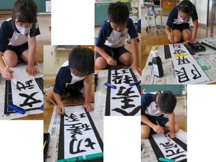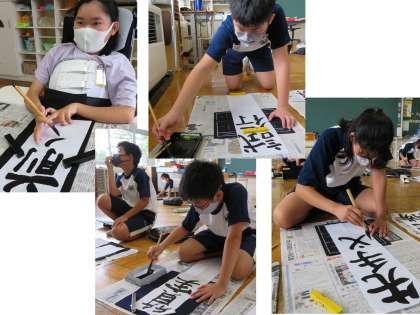 6年生は書写の学習で、2学期のがんばる気持ちを四字熟語で書き表しました。