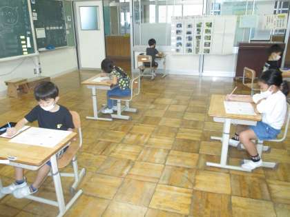 小学校に入って初めて参加したひらがな・計算大会では、今までの学習で身に付けた力を発揮しようする子供の真剣な姿が見えました。