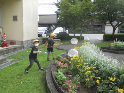 今日の生活科の授業では学校の花壇や畑に行き、秋の虫を探しに行きました。虫を捕まえた後は餌をあげて様子を観察したり、図鑑で詳しく調べたりして、虫と仲良くなろうとしていました。