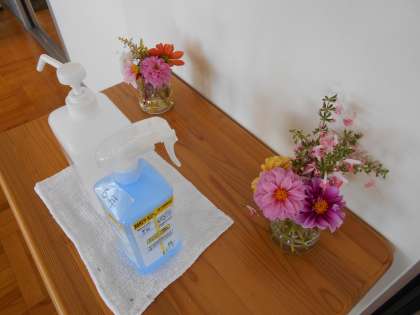 花壇で摘んだ花を、6年生の子供たちが教室前に生けていました。花に親しみ、アイディアを生かしながら、自分たちのくらしを豊かにつくっている船峅の子供たちです。