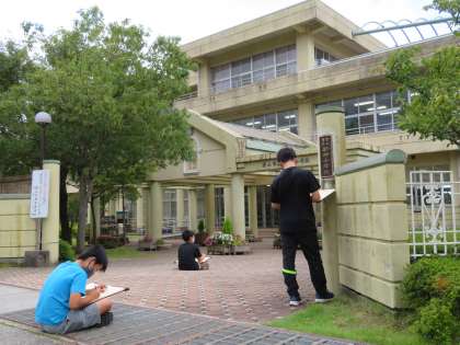 6年間過ごしてきた校舎の思い出を一枚の絵に詰め込もうと、デッサンに取り組んでいる6年生。