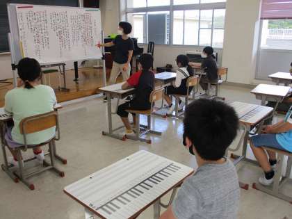 今日は、合唱の練習を行いました。先日より、練習を始めた「歌えバンバン」を、今日も元気に歌っていました。歌い方のこつや気を付けるところを教えてもらいながら楽しく歌うことができました。