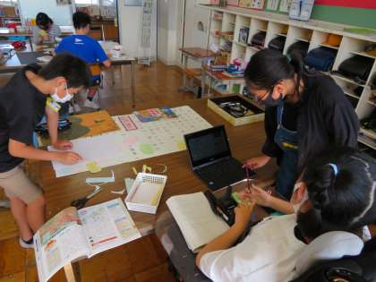 学級文庫の本で調べたときには、武将によって色分けした付箋を貼っているので、みんなで情報を共有することもできます。