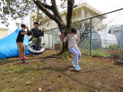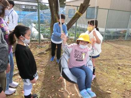 ターザンロープやタイヤブランコは、3年生さんから遊び方を聞き、楽しく遊べました。
