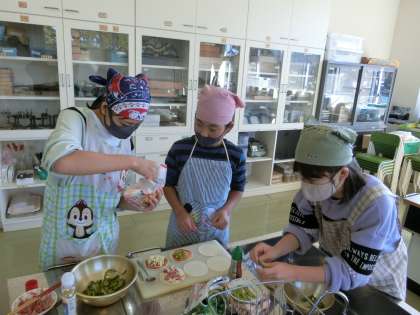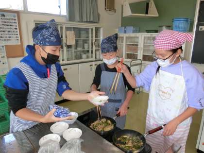 6年生は、家庭科の調理実習で栄養のバランスを考えたおかずをつくりました。