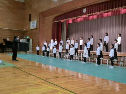 1年生から4年生が、共に練習してきた合唱。2学期から少しずつ歌詞を覚え、より綺麗な歌声で歌えるよう練習し、何度も歌ってきた曲も今日が最後の合唱となりました。本番直前の最後の練習では、高音部分や歌詞の伸ばす部分等、細かなところを集中的に歌いました。