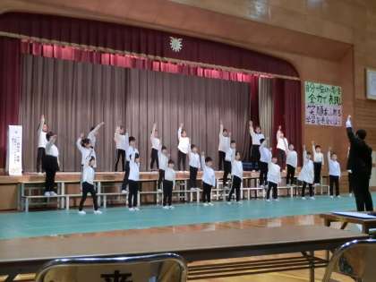 体育館前では、演技をしている前の学年の姿を見て、緊張している様子でしたが、本番では、体全体を使って楽しそうに歌っていました。退場し、教室に戻るとやり切ったという表情をしている子供たち。