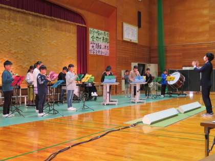 今回の学習発表会のトップバッターは5・6年生による合奏でした。仲間と音とリズムを合わせて演奏をやり切りました。子供たちの元気な演奏が体育館に響きました。