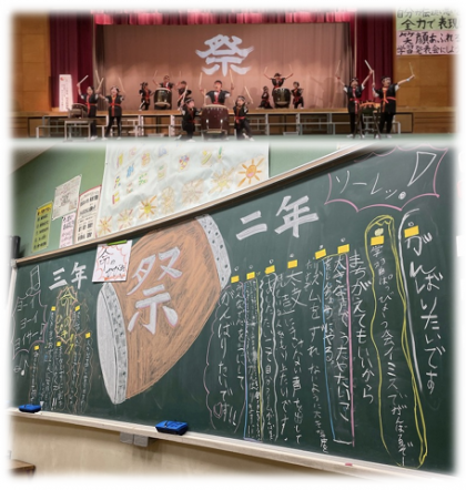和太鼓演奏について、9月末からテーマを考えてリズムをつくり、チームでポーズやかけ声のアドバイスを出し合ってきました。