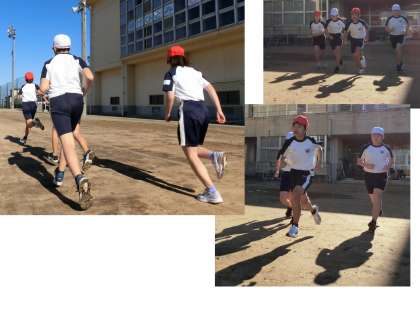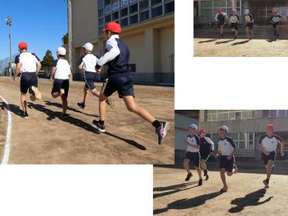 1000mの持久走では、息を弾ませながら自分と向き合って真剣に走る子供たち。